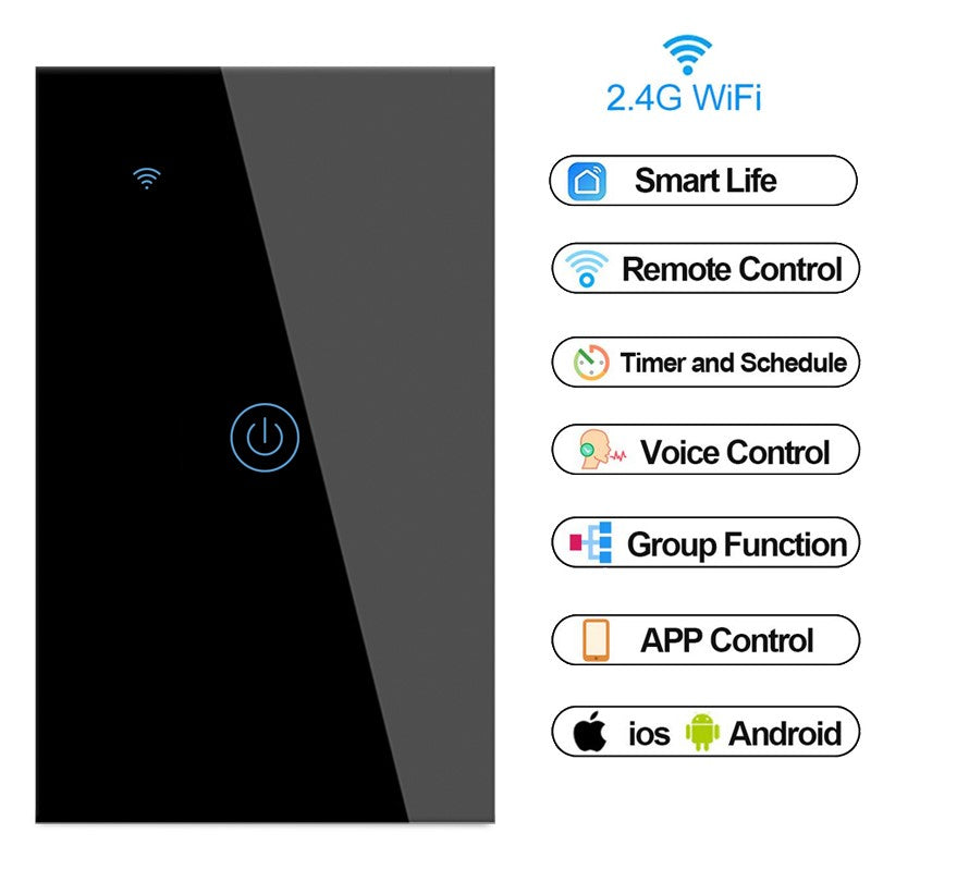 - Interruptor Táctil WIFI para control de luces de forma remota desde cualquier parte del mundo mientras tenga internet en su casa y en su celular.